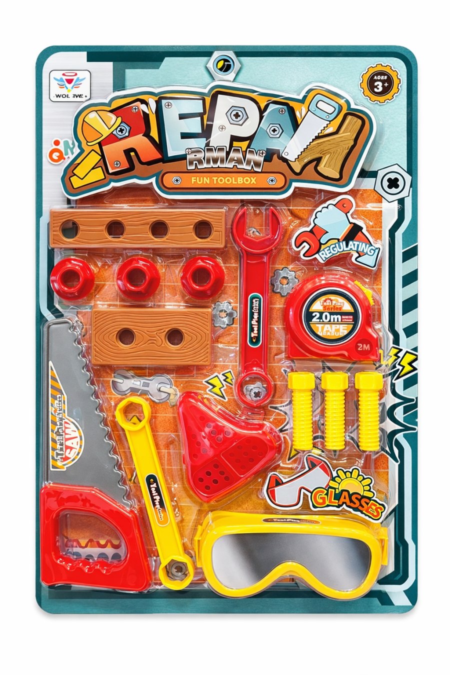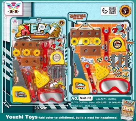 مجموعة متكاملة تحتوي على منشار، مفتاح ربط، متر قياس، نظارات حماية وأكثر 🔧🪛