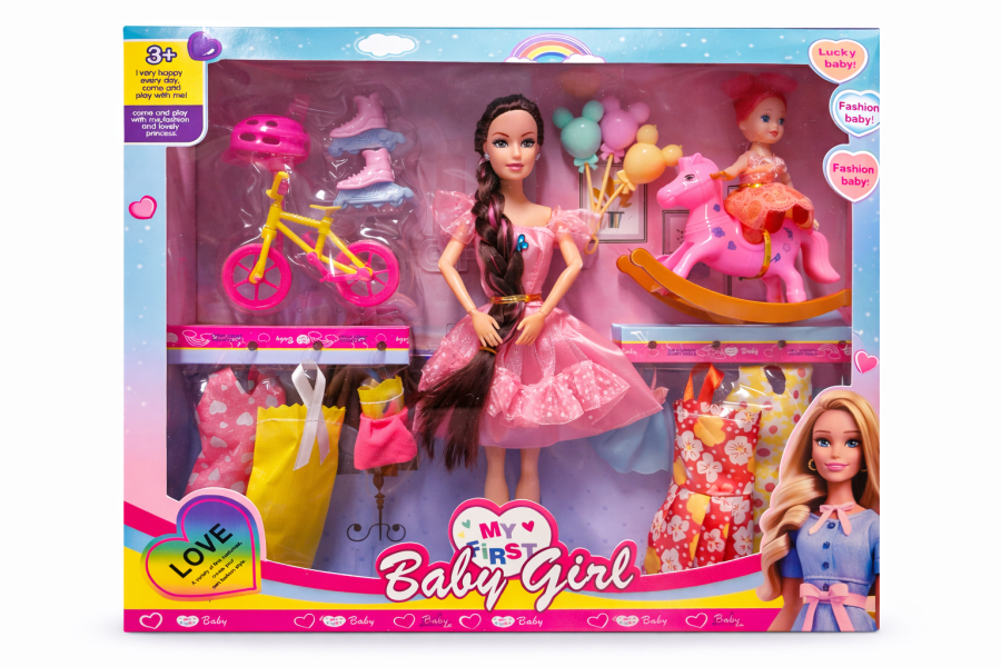 لعبة باربي عظم ومفاصل مع بنت صغيرة ودراجة