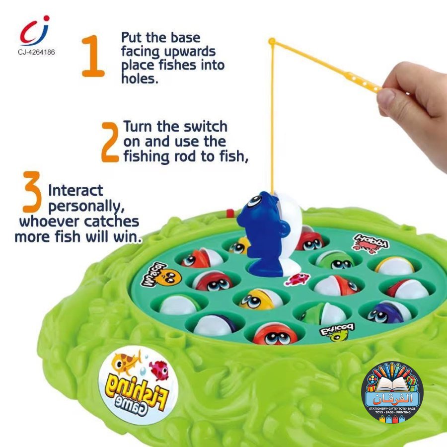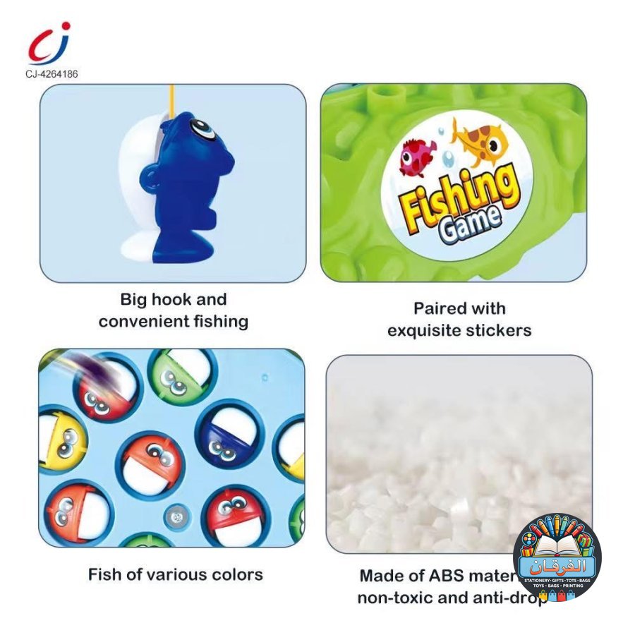 • المحتويات: لوحة صيد دوارة + صنانير صيد + سمكات ملونة 🎣.