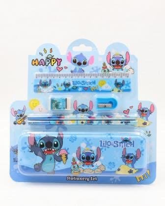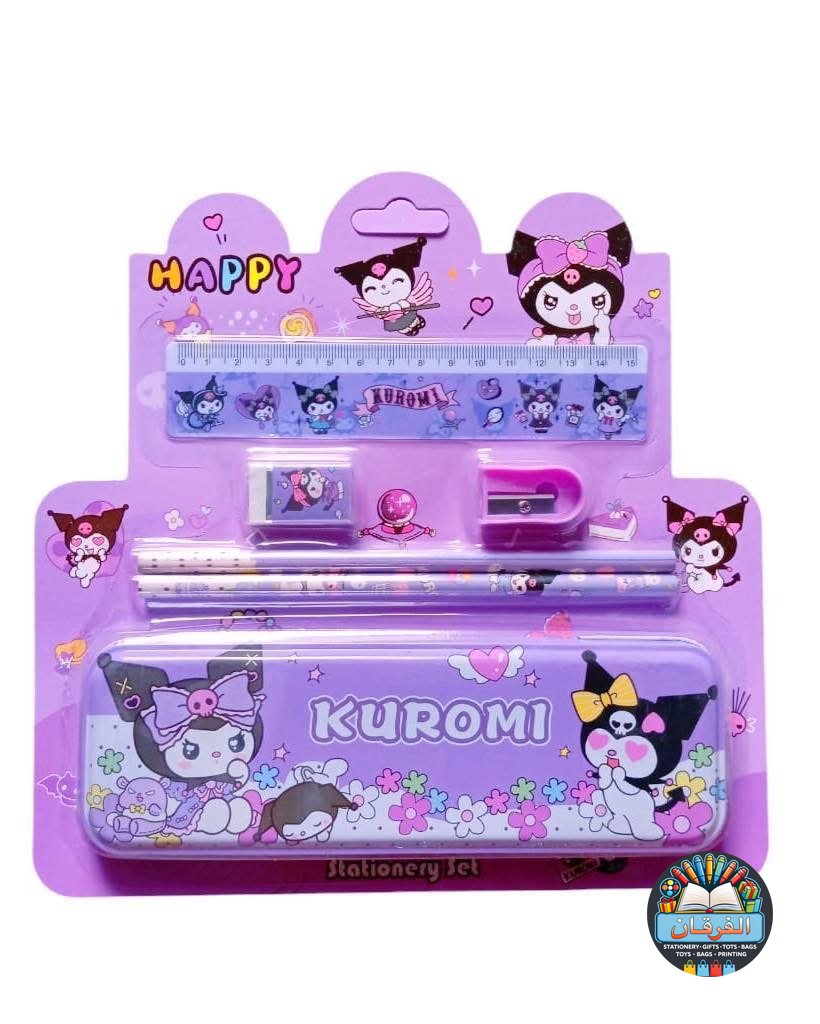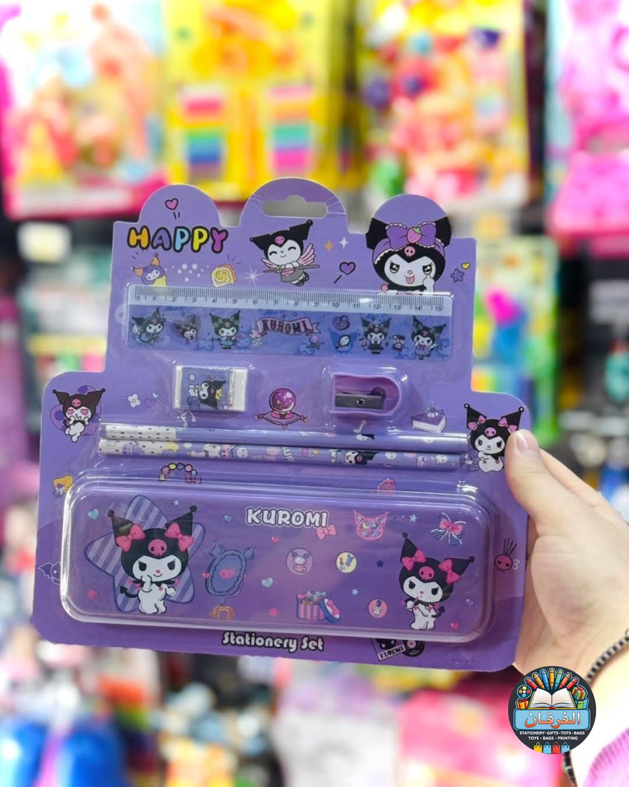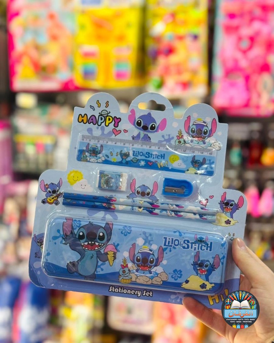 كل واحد فيه مقلمة معدن، 2 أقلام رصاص، مبراة، ممحاة ومسطرة بنفس الشخصية الكرتونية المحبوبة للأطفال 🧸✏️📏